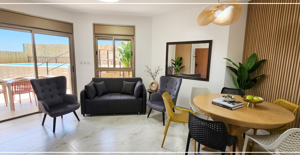 הדירה ממוקמת בקומת קרקע ,בחצר שולחן ישיבה ופינת ברביקיו.